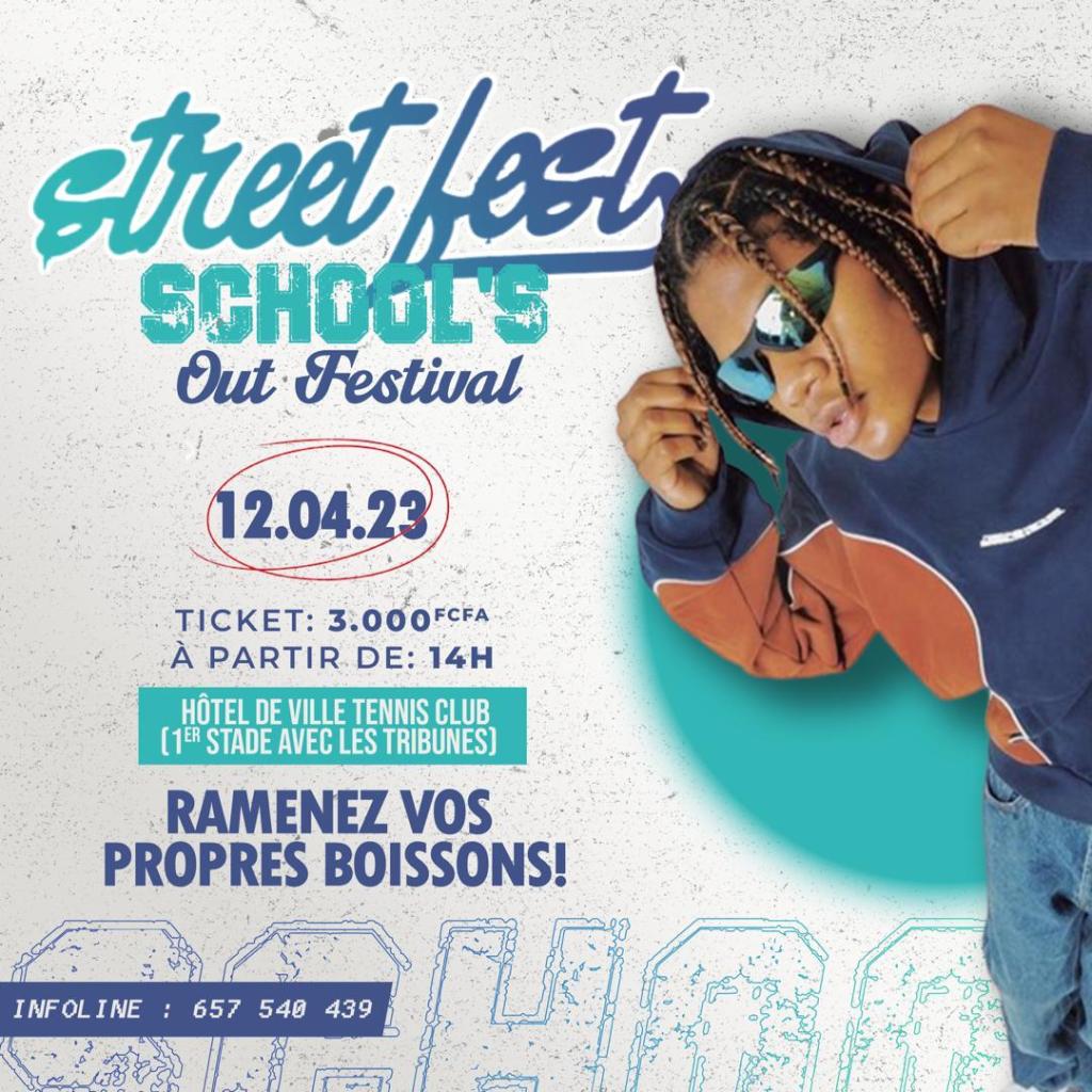 « STREET FEST* une initiative du jeune Hugues FOUDA .ce concept a été mis sur pied dans le but de faire des rencontres entre jeunes et passer des moments de détente.L’édition de cette année se tiendra le 12-03-23 au club de tennis en face de la maison de la radio